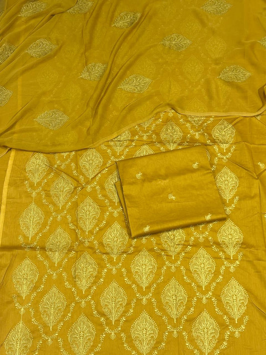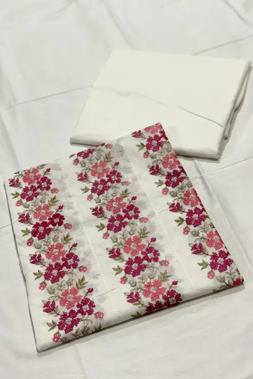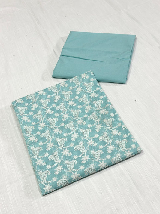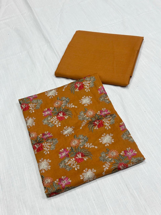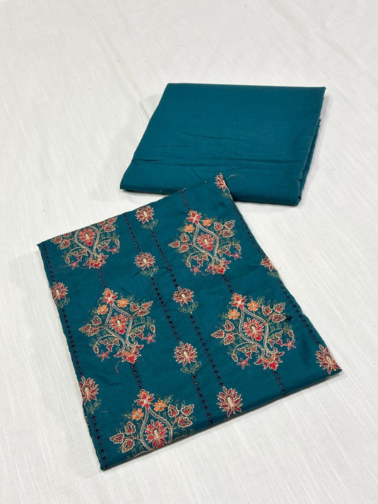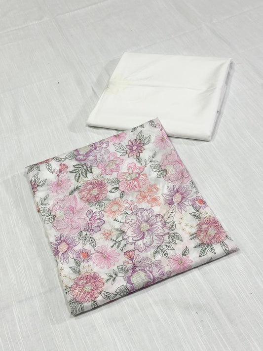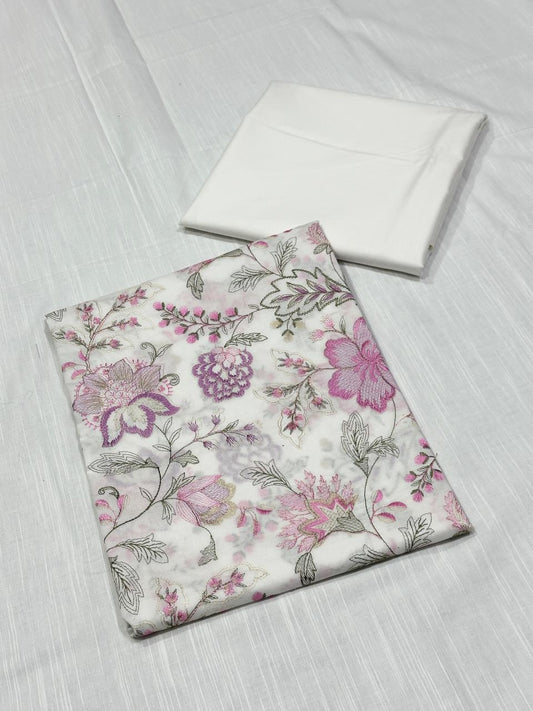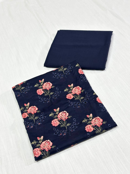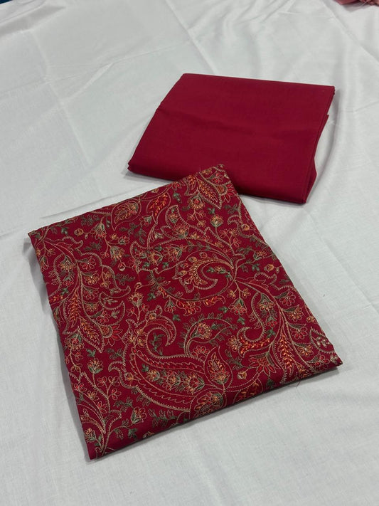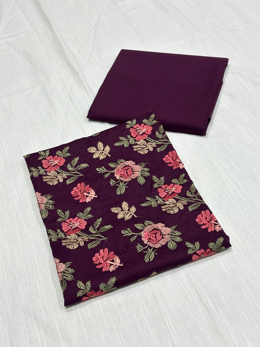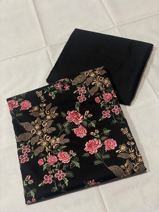 Lawn 2 piece suit (Summer Collection)- Front full Embroidered shirt(2.75 yards)- Sleeves: Small Boti Design-...