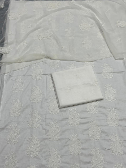 lawn 3 piece Allover embroidered shirt Crinkle chiffon dupatta (2.75 yards) Plain same color lawn...